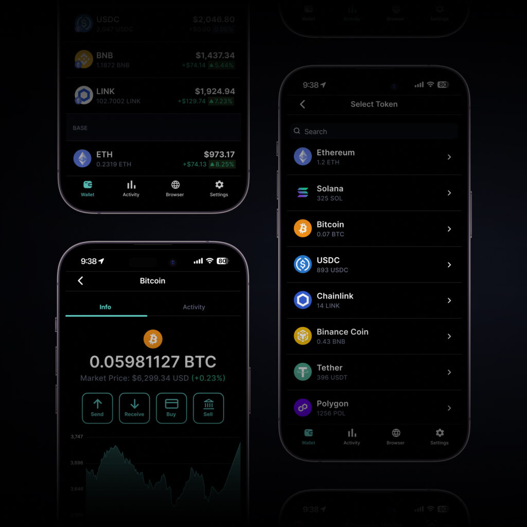 TAP Wallet provides multi-asset storage with instant swapping capabilities. TAP Invest connects your brokerages and exchanges for unified portfolio management and one-tap strategy execution. TAP Registry authenticates high-value assets with blockchain records. When buying registry-authenticated assets, TAP Wallet provides verified payments linking to ownership transfers. All three share data seamlessly for complete visibility across your financial life.
